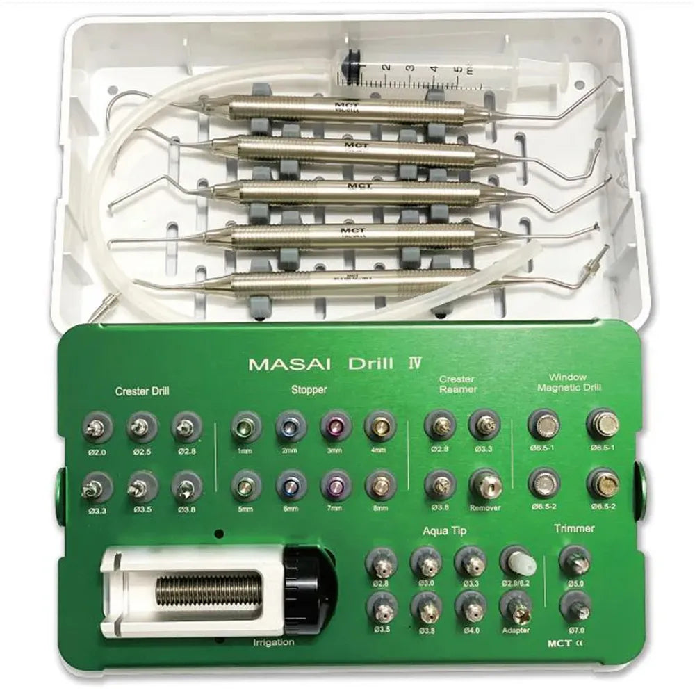 The MCTBIO Masai Drill Kit-4 (MAS4-01) introduces cutting-edge technology in maxillary window preparation, prioritizing sinus membrane safety. The Masai Magnetic Drill utilizes Alnico magnets, heat-resistant up to 400 degrees Celsius, ideal for autoclaving. This Magnetic Sinus Artificial Intelligence Drill features three key safety mechanisms for optimal precision and patient care.