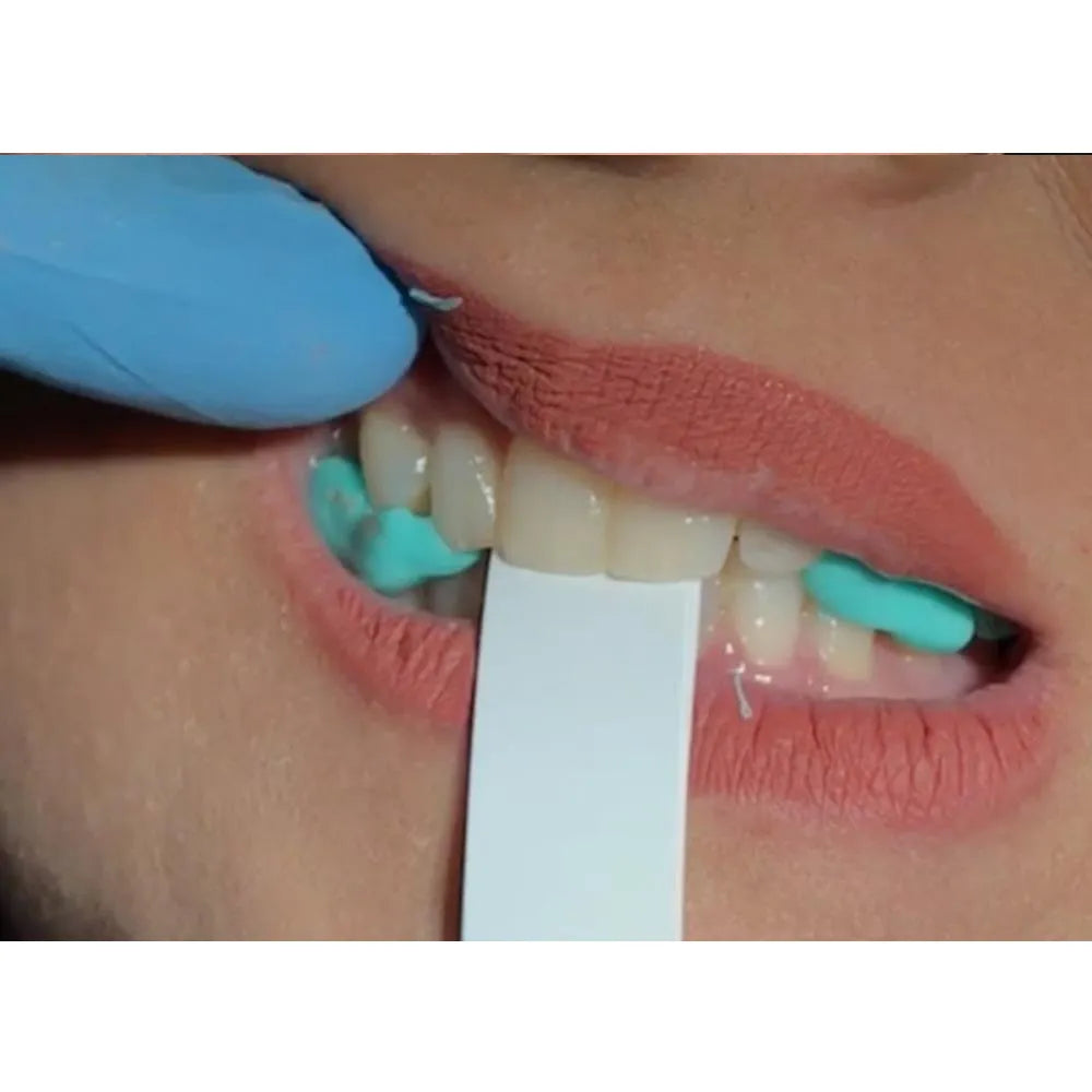 - Step 1: Start with an arbitrary number of leafs enough to produce posterior disclusion (typically 5-8). With patient in a reclined position, orient the gauge along the midline between upper and lower central incisors.