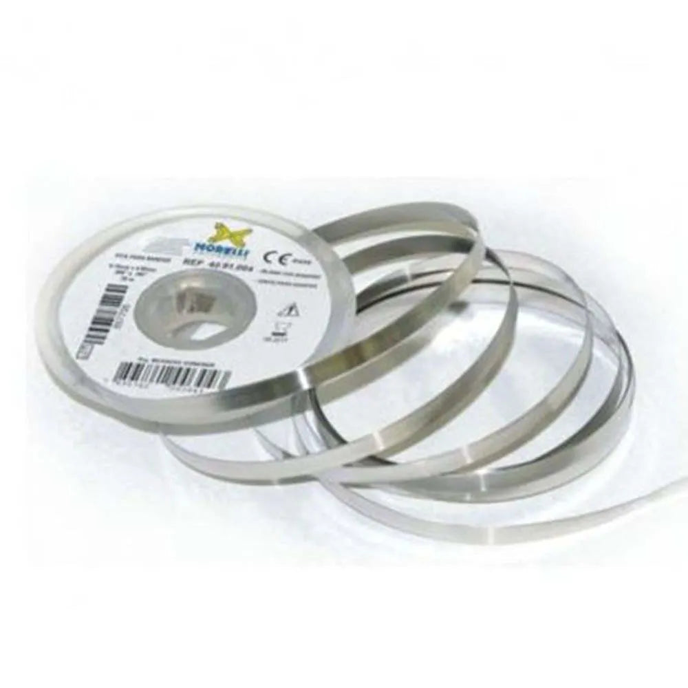 Morelli Band Material in a convenient 26 Ft. spool packaging, designed specifically for orthodontic applications. Crafted from polished and malleable stainless steel, this band material offers precise bandaging for each tooth, catering to individual sizes and morphologies. Its seamless construction ensures secure attachment of orthodontic fixtures, particularly beneficial for recurrent bracket falls. Ideal for use on maxillary or mandibular molars, the Morelli Band Material is available in sizes .180" X .004" and .180" X .006", providing versatility and reliability in orthodontic procedures. Trust Morelli for durable and effective orthodontic solutions.