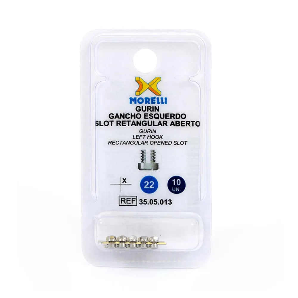 Designed with versatility in mind, the Gurin accommodates various arch shapes including round, square, and rectangular arches up to .021" x .025". The open slot left configuration allows for easy installation and adjustment, serving as a reliable anchor to create desired spacing for already installed arches. Each pack contains 10 units of the Morelli Gurin Open Slot Left, featuring a slot size of .022, providing precise compatibility with standard archery setups. With its durable construction and ergonomic design, this product promises enhanced performance and convenience for archery enthusiasts.