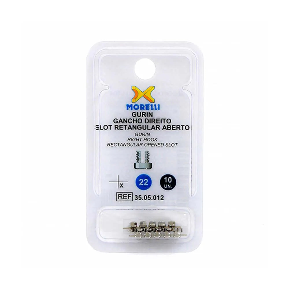 Constructed from polished plasma stainless steel, the Morelli Gurin Open Slot Right boasts rounded edges, ensuring unparalleled comfort during prolonged wear. The superior material composition not only guarantees resilience but also facilitates effortless nut tightening and secure locking, elevating your archery experience to new heights of reliability. Designed to accommodate various arch shapes, including round, square, and rectangular profiles up to .021" x .025", this Gurin offers exceptional adaptability for diverse orthodontic requirements. Its precisely engineered slot, measuring .022", ensures seamless integration with existing arches, providing a firm anchor while optimizing spacing adjustments. Each pack includes 10 units of the Morelli Gurin Open Slot Right, meticulously packaged to preserve quality and facilitate convenient storage. With its standardized item code 3505012, identifying and replenishing your orthodontic essentials has never been easier.