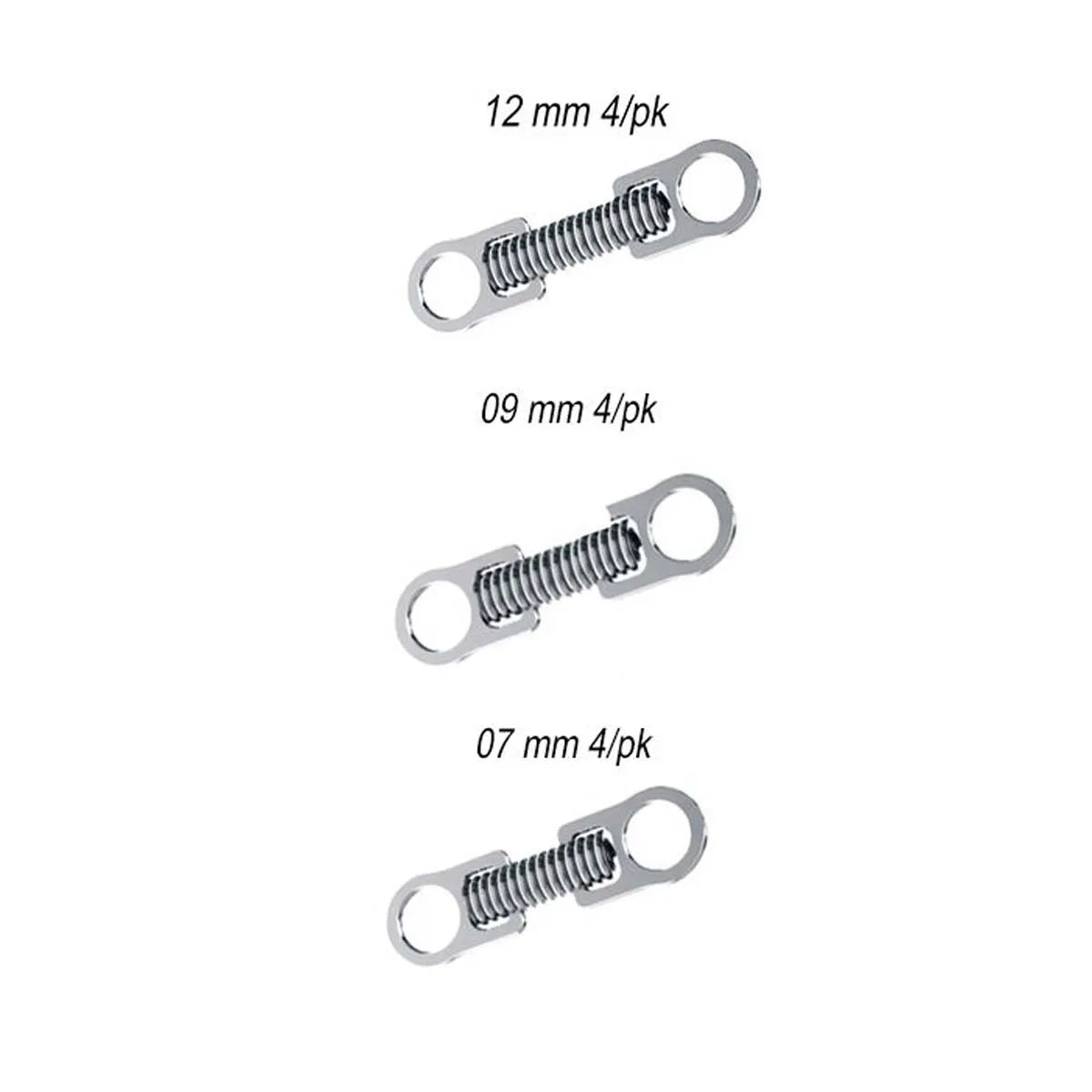 The springs are meticulously engineered to provide smooth and constant forces essential for effective traction and dental compression. Whether you require tension for closing gaps or compression for aperture adjustment, these springs deliver consistent force with precision and finesse. Designed with versatility in mind, the inclusion of eyelets ensures optimal anchoring in Miniscrews, offering stability and durability throughout the treatment process. The eyelets provide consistent force distribution, ensuring that orthodontic treatments remain effective until the desired outcomes are achieved.