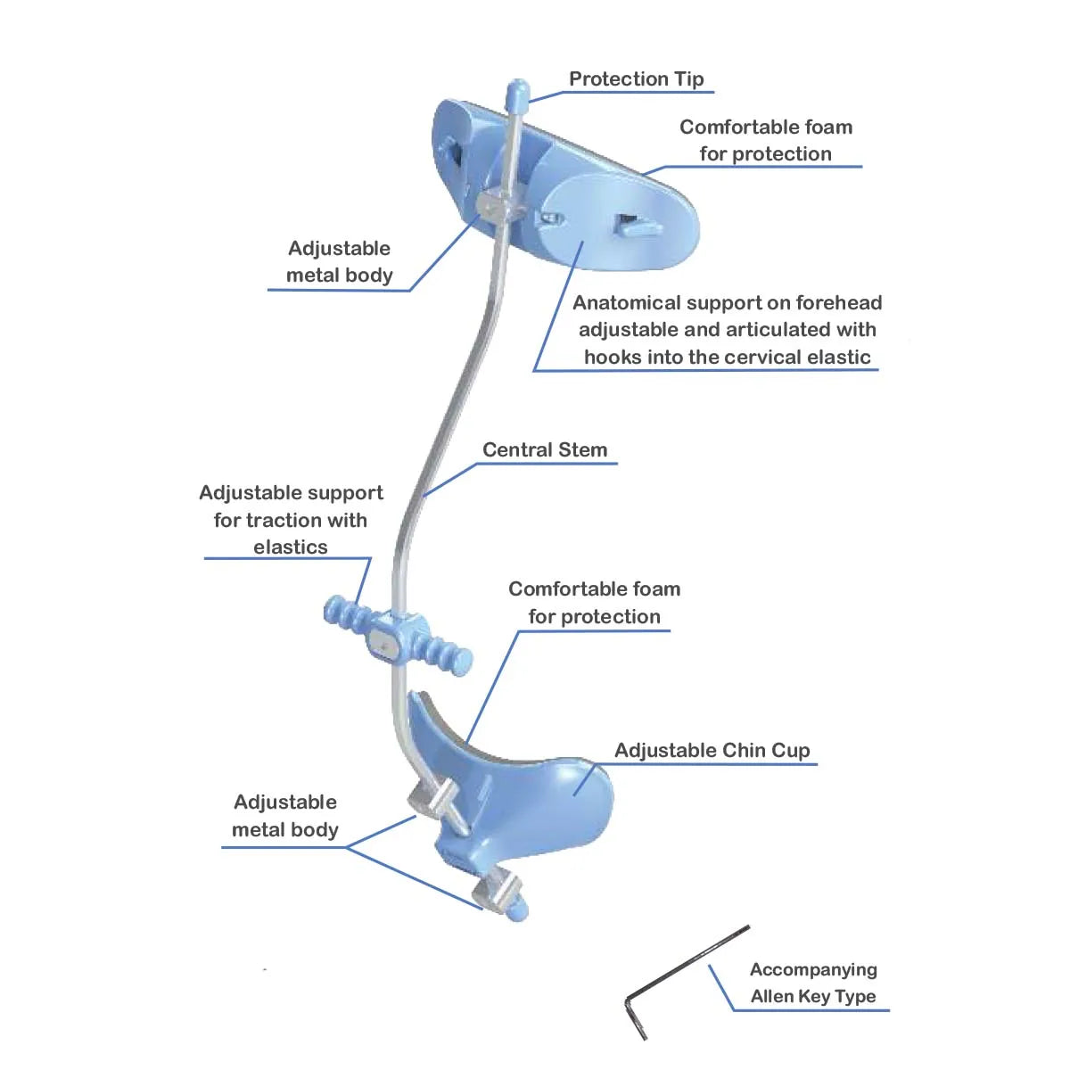 - Adjustment: If using the Articulated Chin Cup, adjust the articulation mechanism to ensure proper fit and alignment with the patient's chin.