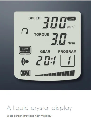 in rotation speed and torque. Lubricate the contra-angle head, turn off the power, connect the AC adaptor, and turn on the power. Simultaneously hold down both SPEED buttons for more than one second. - Battery Refresh: Battery refresh helps resolve the