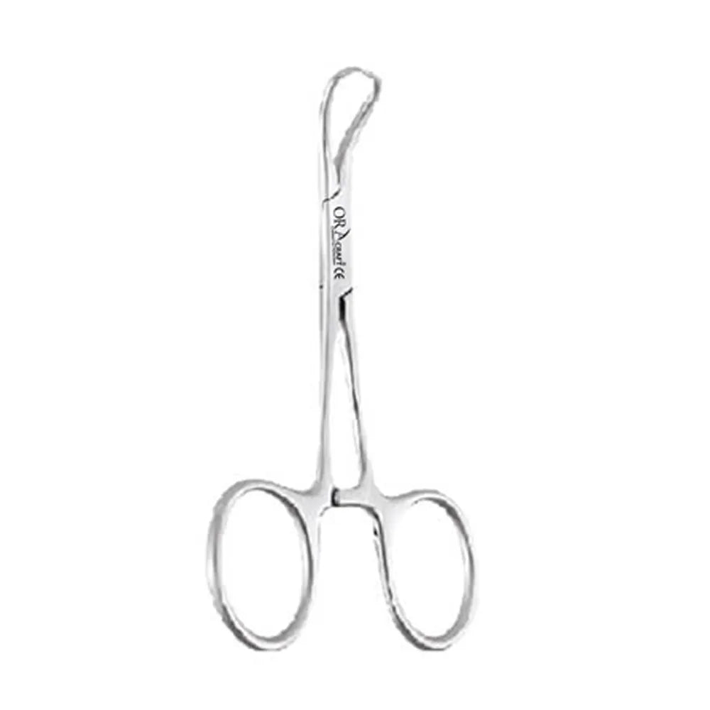 Oracraft Backhaus Towel Clamp is a precision-engineered surgical instrument designed for secure fastening of towels and drapes during medical procedures. Featuring a scissors-like design with ergonomic ring handles, this instrument ensures a comfortable and controlled grip for the user. The distinctive feature of the Backhaus Towel Clamp is its extended blades that are curved beyond the pivot point, allowing for precise and firm grasping. The pointed distal tips of the blades converge in a pincer-like fashion, providing a reliable mechanism for holding materials together securely without slippage.