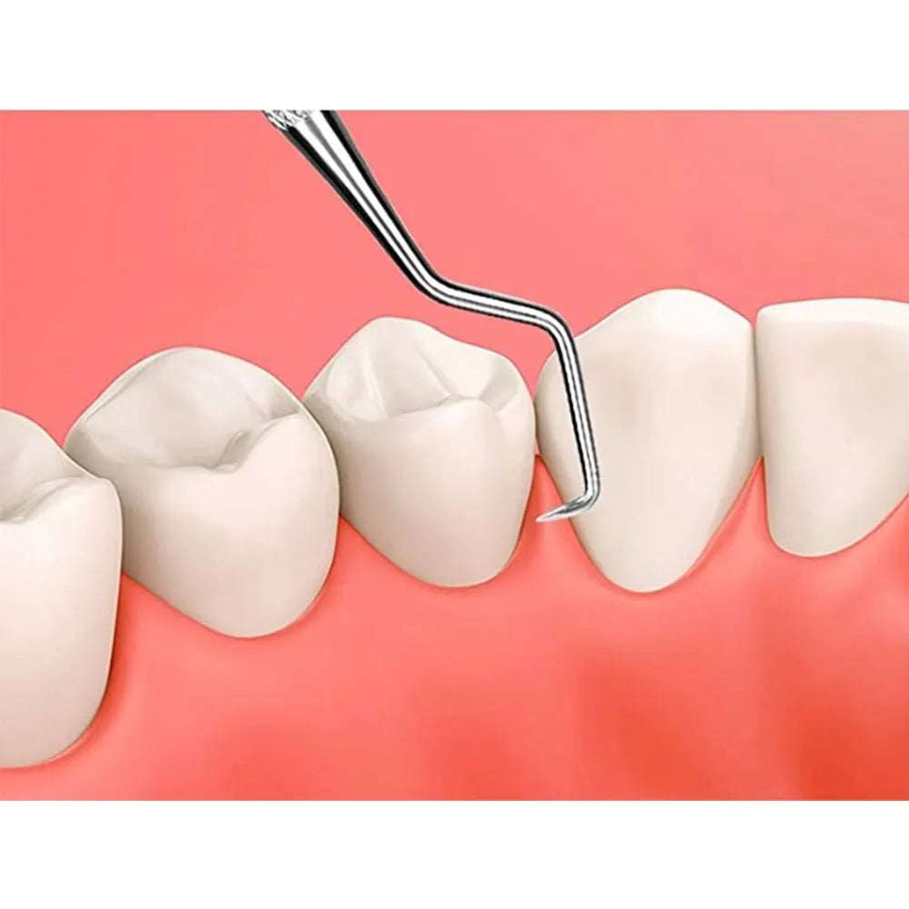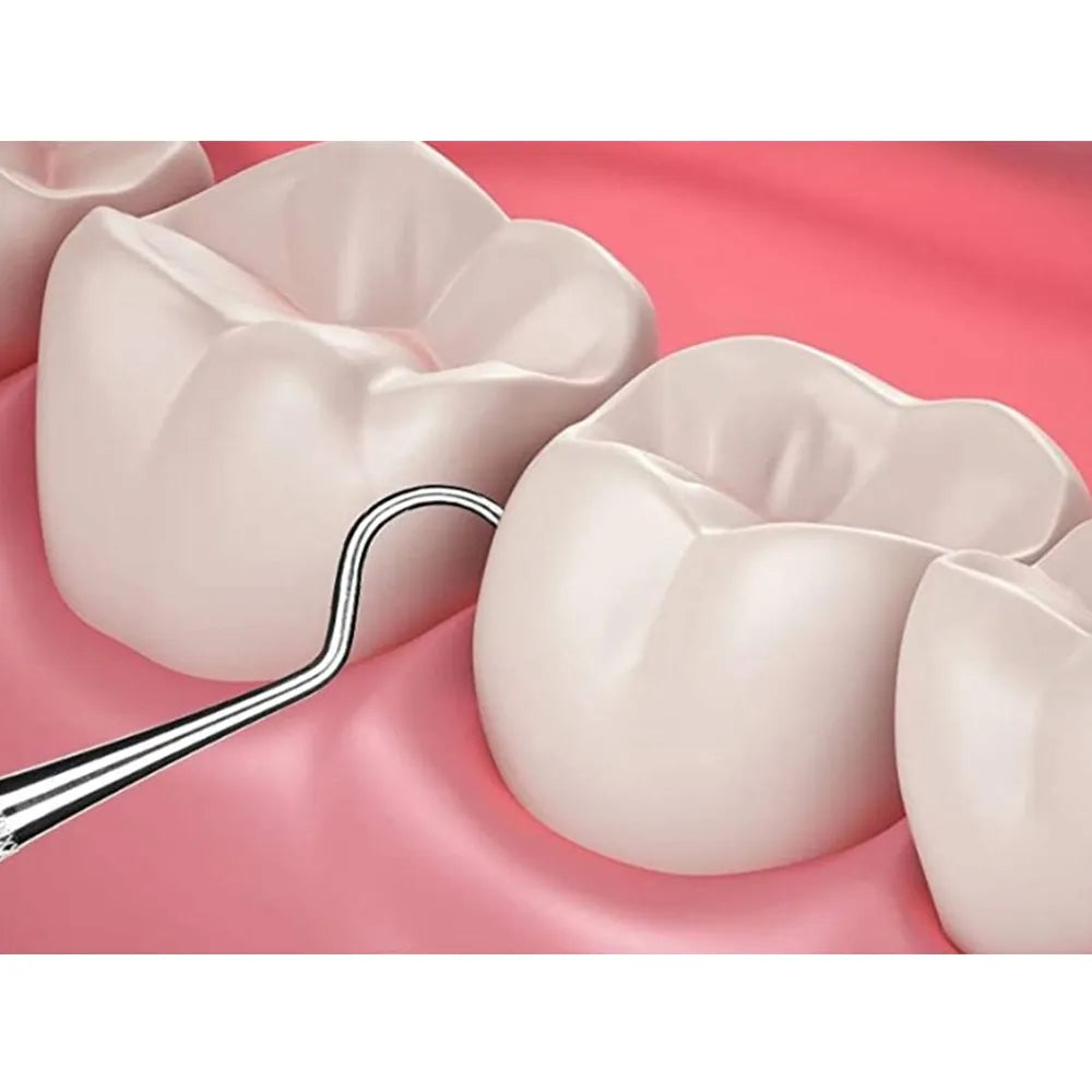 - Detecting Caries and Calculus: Use the pointed tip to gently explore the tooth surfaces, focusing on detecting caries or calculus buildup by feeling for any irregularities or soft spots.