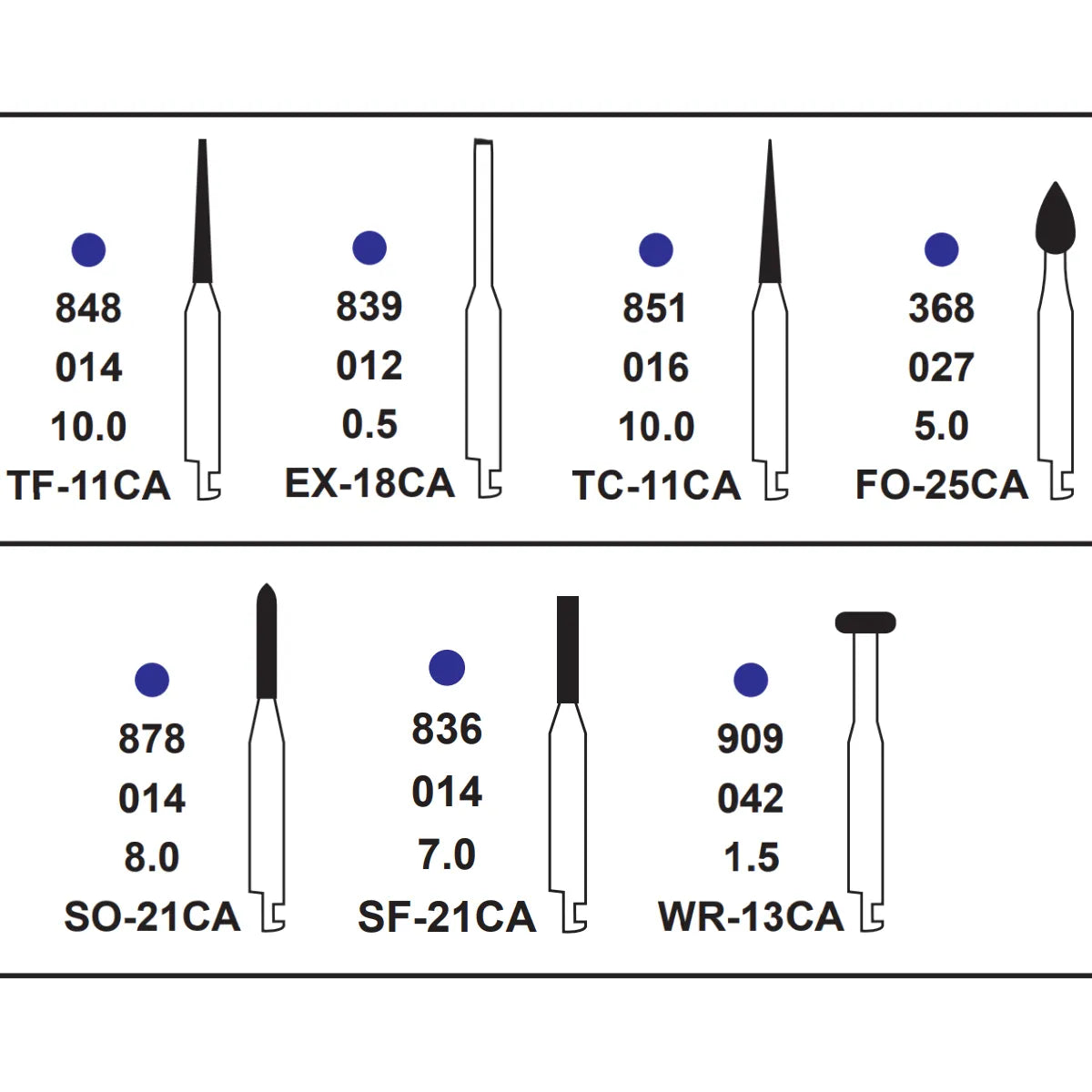 - Variety of Burs: Includes three different bur types (EX-18CA, TC-11CA, TF-11CA, FO-25CA, WR-13CA, SO-21CA, SF-21CA) to accommodate diverse applications