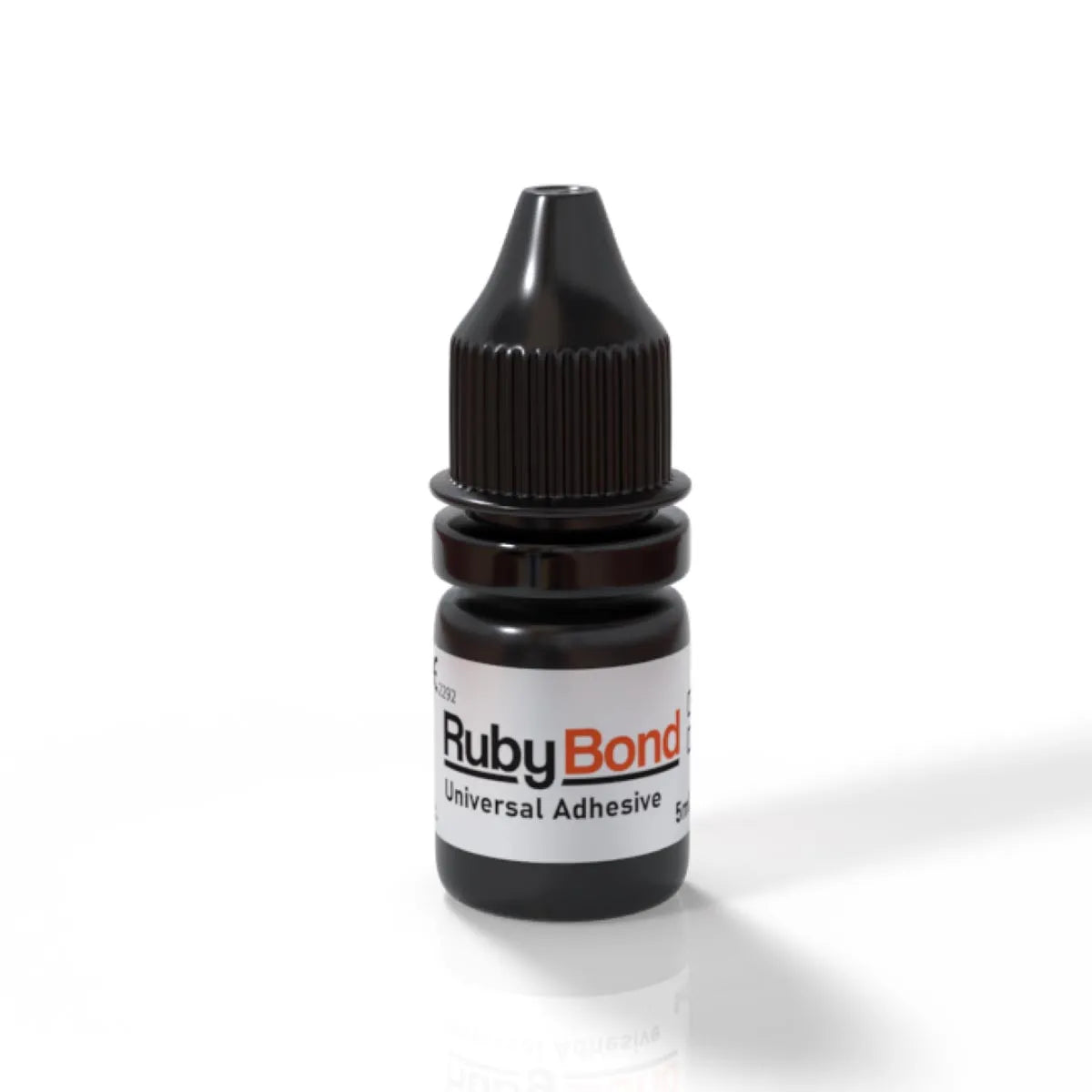 RubyBond 5th Generation Universal Adhesive: This adhesive provides superior adhesion for composites on enamel and dentin, and it enhances bonding between glass-ionomer underfill cement and composite fillings. It is applied easily using an applicator and requires a 15-second light cure for optimal results.