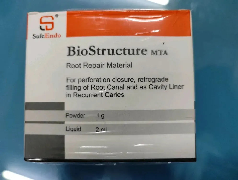 SafeEndo BioStructure MTA is a specialized dental cement based on Di and Tri-Calcium Silicate and Tricalcium Aluminate, derived from advanced material research in inorganic hydraulic powder technology. MTA is indicated for both vital pulp therapy and Endodontics procedures.