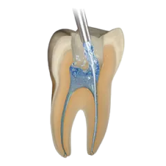 - Then using the root needle apply the liquid to the root canal for 2-3 minutes, and repeat the procedure alternating chemical, and mechanical enlargement with impregnation of dentine with a fresh portion of the liquid if necessary.