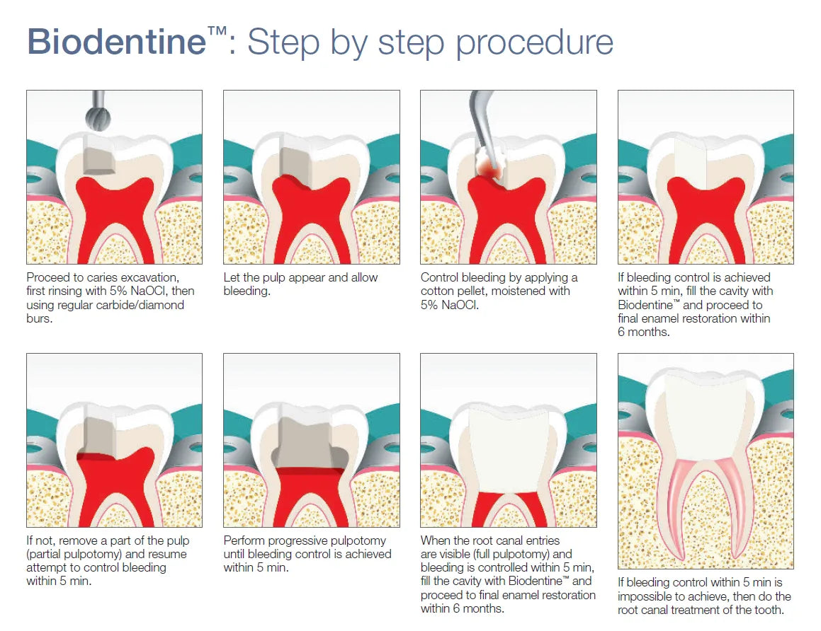 - Promotes reactionary dentine genesis for pulp vitality preservation.