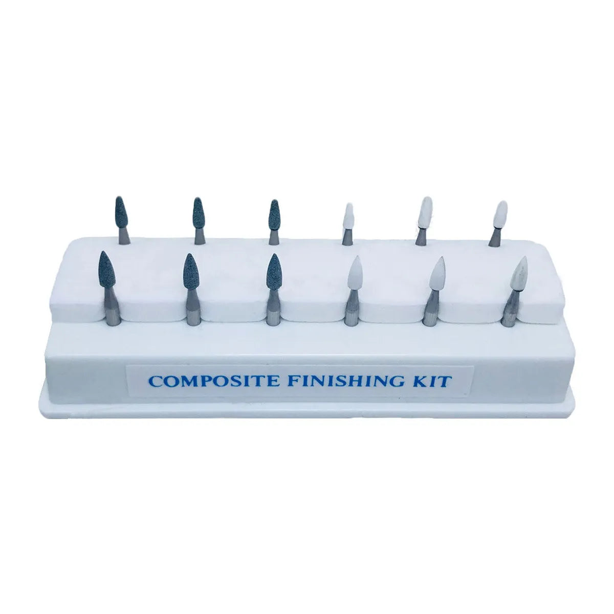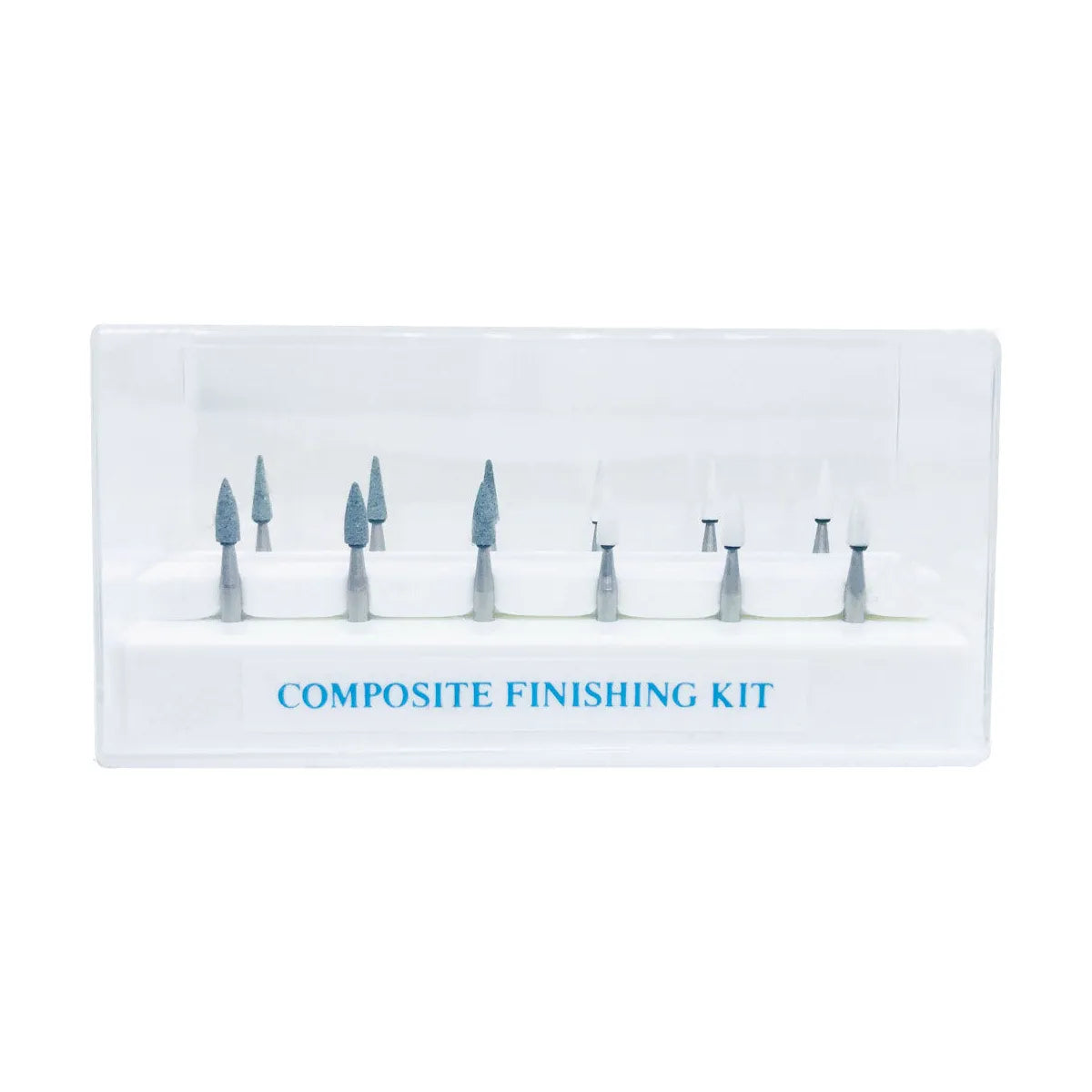 Shofu Composite Finishing Kit, featuring Dura-Green silicon carbide stones for precision adjustment and Dura-White aluminum oxide stones for fine finishing. The kit, available in Contra-Angle and Friction-Grip options, offers versatility and choice between a airotor and contra-angle burs. Tailored for finishing and polishing composite restorations and GIC, these high-durable abrasives provide cost-effective and vibration-free performance. The kit is designed for contouring and finishing aesthetic restorations, addressing interproximal and subgingival composite fillings.