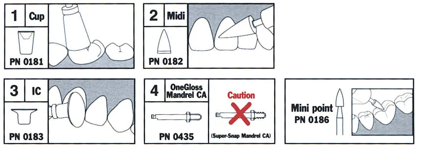 Shofu OneGloss is an aluminum oxide one-step finisher and polisher that provides the ideal finish for all types of composite and cemented restorations simply by altering the contact pressure as you go from finishing to polishing.