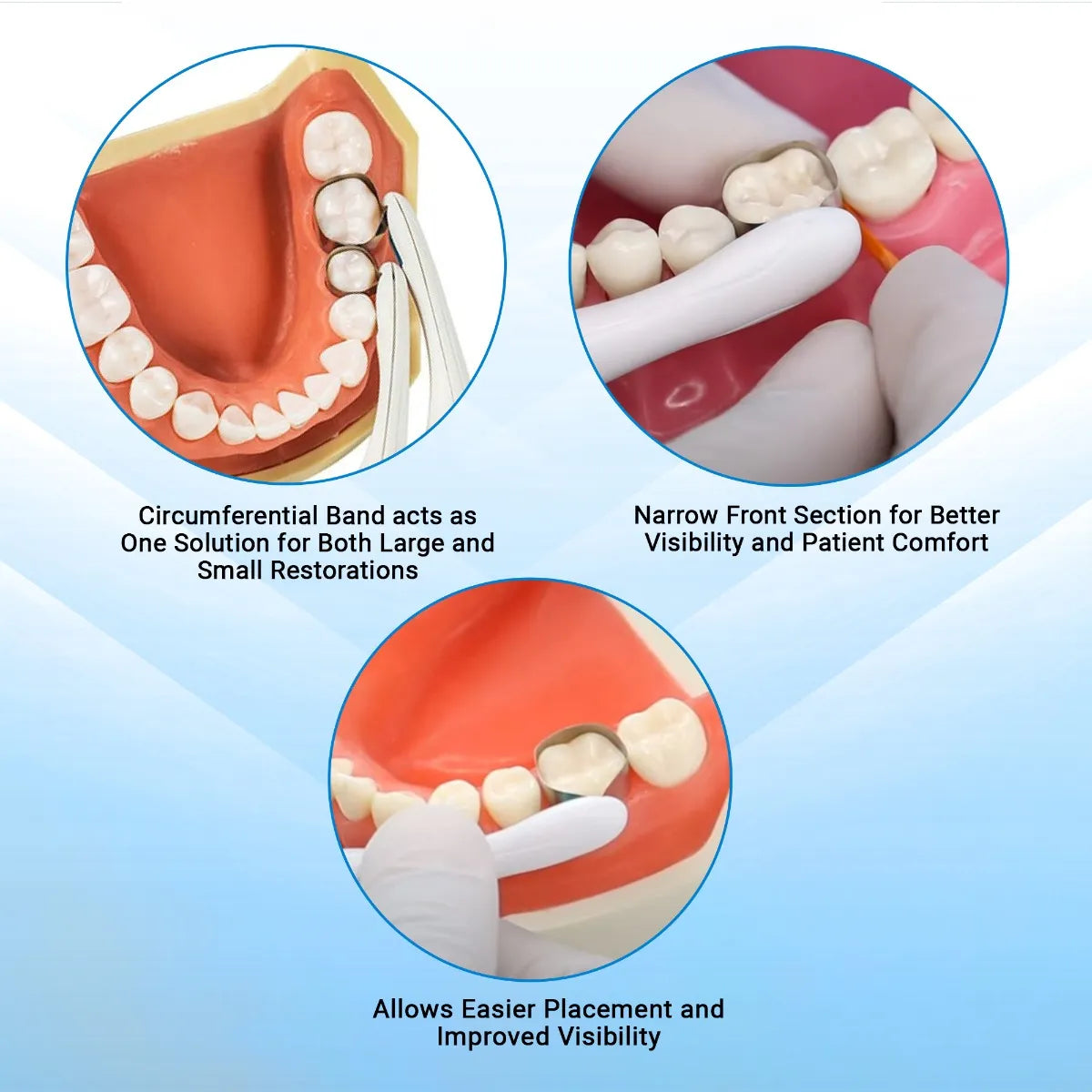 - Circumferential Band can be used for MO/OD/MOD/ Cusp replacements.