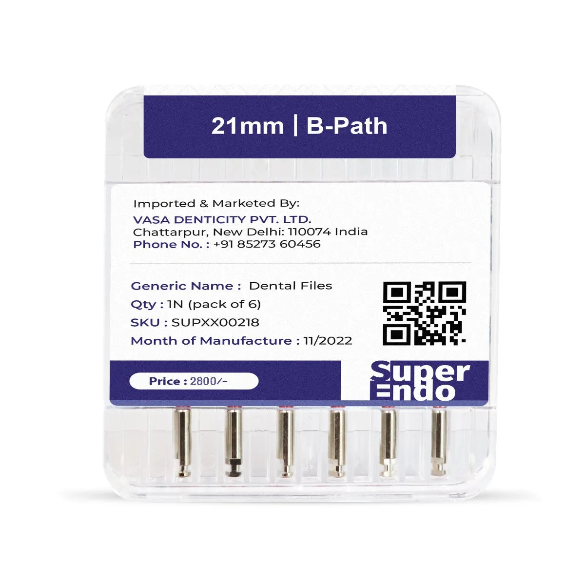 Super Endo Blue Rotary Files are thermally treated instruments leading to an improved version. These files have increased resistance to cyclic fatigue and greater flexibility enabling a smoother and safer canal preparation.