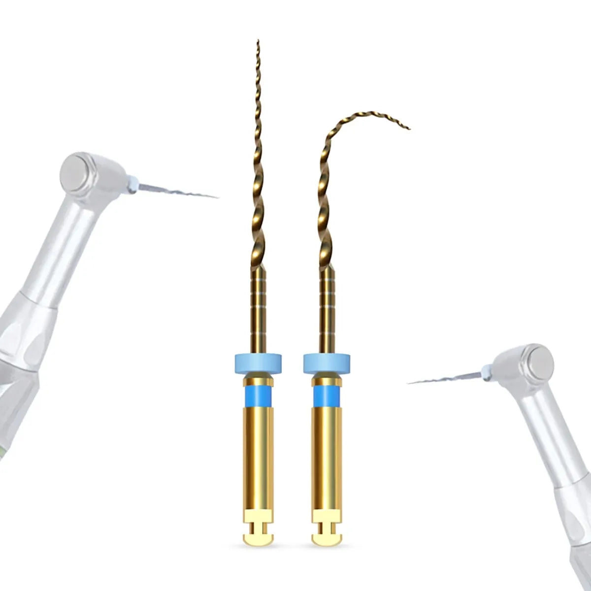 Advancement in Rotary files has produced tremendous results in root canal procedures. SuperEndo Gold-Flex rotary files are made of thermo-mechanically processed Controlled Memory Wires. These wires increase the flexibility of the files and reduce the shape memory, which allows the clinician to pre-bend the files and treat curved canals with ease.