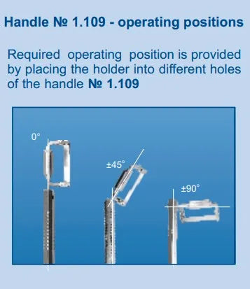 Holder can be operated by itself or with handles № 1.107, 1.109 or any other handpiece of EVE type providing to-and-fro motion.