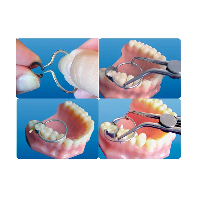 Saddle contoured metal matrices are often used in dental procedures such as fillings and crowns to help shape and form the restorative material to the correct shape of the tooth. They are typically made of stainless steel or other metal alloys that are both strong and flexible enough to contour to the tooth. These matrices are designed to be placed around the tooth to create a temporary wall that holds the restorative material in place while it sets.