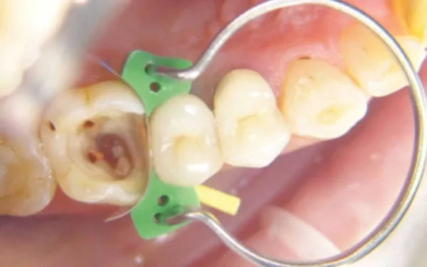 - After filling, carefully remove the matrix to reveal the restored tooth.
