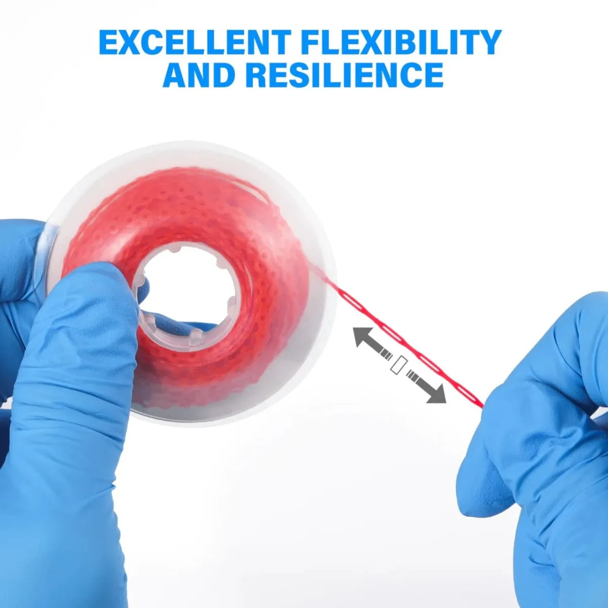 U Orthodontics E-Chain are specifically designed to enhance orthodontic treatments, particularly when used with low-profile systems. The combination of their low profile and increased elasticity makes them significantly easier to ligate compared to standard power chains. U Orthodontics Chain Elastics offer a wide range of applications. They can be effortlessly rotated, ligated, and used to maintain or consolidate spaces. The ease and quickness with which these elastics can be manipulated contribute to improved workflow and treatment efficiency. One notable feature of U Orthodontics Chain Elastics is their unique heat-curing process. This process ensures a longer lifespan compared to other similar products in the market. The elastics are designed to withstand the demands of orthodontic treatment, maintaining their integrity and functionality throughout the course of the treatment. To cater to various orthodontic needs, U Orthodontics Chain Elastics are available in three different types as short, long & continuous.