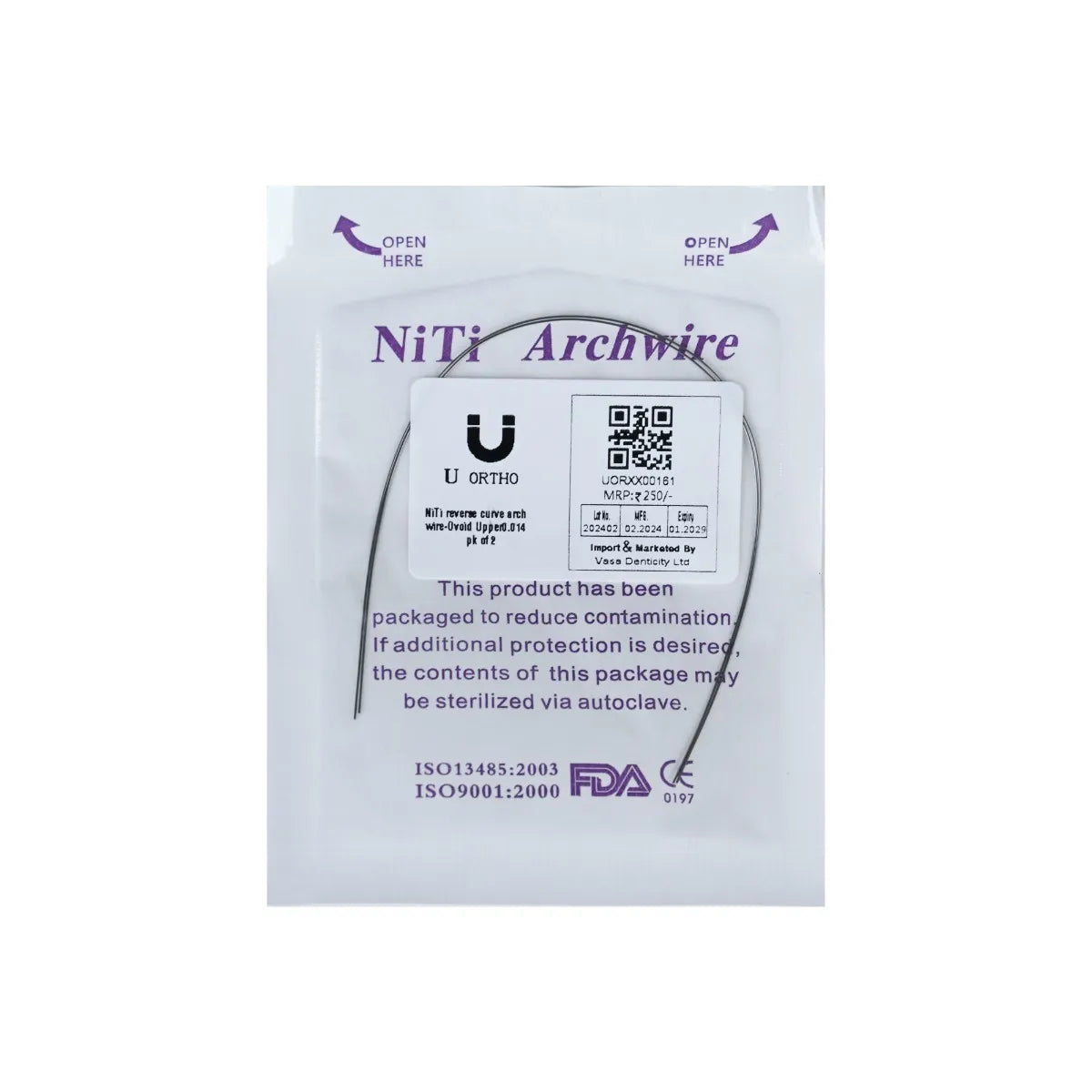 U ortho Niti Reverse Curve Arch Wire-Ovoid is an innovative orthodontic solution designed to tackle complex dental cases with utmost precision and control. Crafted from high-quality Niti (Nickel Titanium) alloy, this arch wire delivers exceptional performance and enhances treatment outcomes. The Niti Reverse Curve Arch Wire-Ovoid apart from its unique ovoid shape, offers several advantages, including improved torque control and rotational stability. This enables to achieve highly accurate and controlled tooth movements, resulting in optimal alignment and correction. The Niti alloy utilized in this arch wire exhibits outstanding flexibility and remarkable shape memory properties. It maintains its shape even under pressure, providing consistent force throughout the treatment process. This feature is vital for achieving desired tooth movements while minimizing the risk of wire deformation or breakage. Specifically tailored to address challenging cases such as reverse curve situations, the Niti Reverse Curve Arch Wire-Ovoid excels in its ability to counteract the natural curvature of teeth. By applying appropriate forces, orthodontists can effectively align and level the dental arch, resulting in improved occlusion, aesthetics, and overall oral harmony. The compatibility of the Niti Reverse Curve Arch Wire-Ovoid with various orthodontic bracket systems ensures its versatility and applicability in a wide range of treatment approaches. Orthodontists can seamlessly incorporate this arch wire into their existing protocols, streamlining their practice and delivering consistent results.