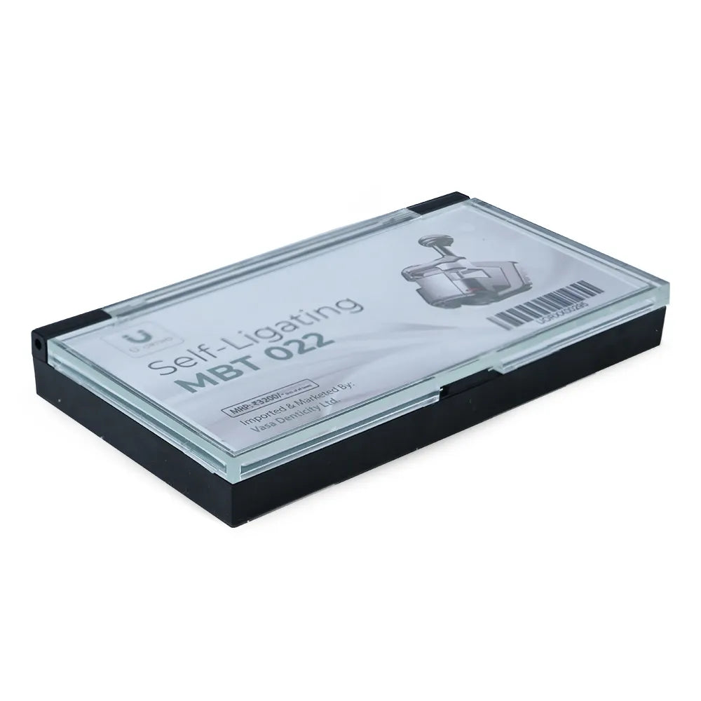 The U Ortho Self-Ligating MBT: Brackets are innovative dental brackets designed for orthodontic treatment, offering a more comfortable and aesthetically pleasing option for aligning and straightening teeth. Unlike traditional brackets, these self-ligating brackets feature a built-in clip mechanism that securely holds the archwire in place without the need for elastic or metal ligatures. This design reduces friction, making the treatment process smoother and more comfortable for the patient. With a smaller profile and a sleek appearance, these brackets not only enhance comfort but also provide a visually appealing alternative for individuals undergoing orthodontic care.