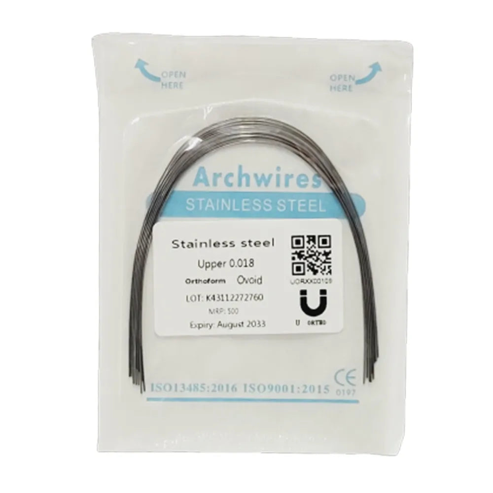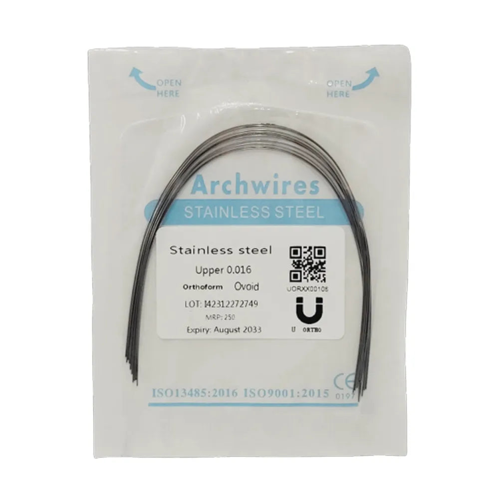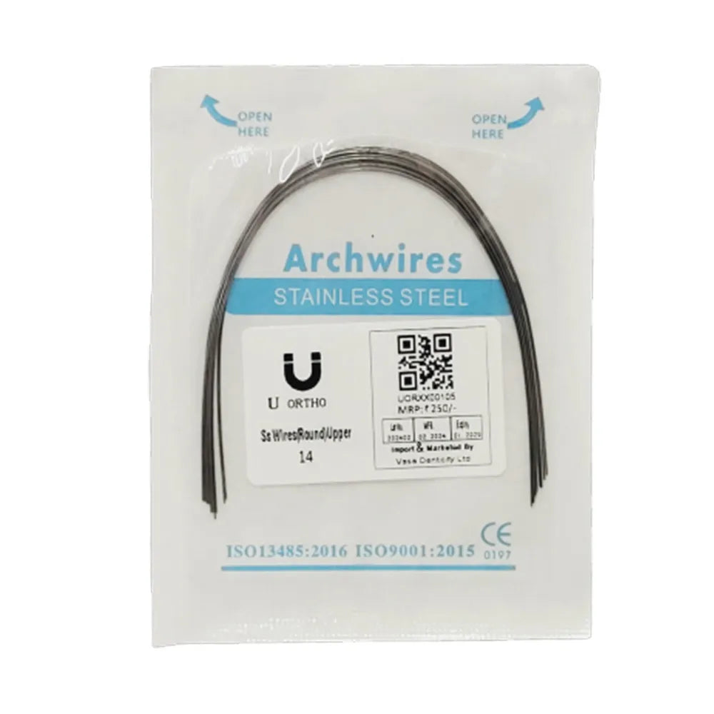 U Orthodontic Ss Wires (Round) Stainless Steel Arch Wire: Stainless steel arch wire used through the entire treatment , but are best suited for mid-to-late stages of treatment. Orthodontic archwires may be fabricated from several alloys, most commonly stainless steel, nickel-titanium alloy (NiTi), and beta-titanium alloy (composed primarily of titanium and molybdenum).
