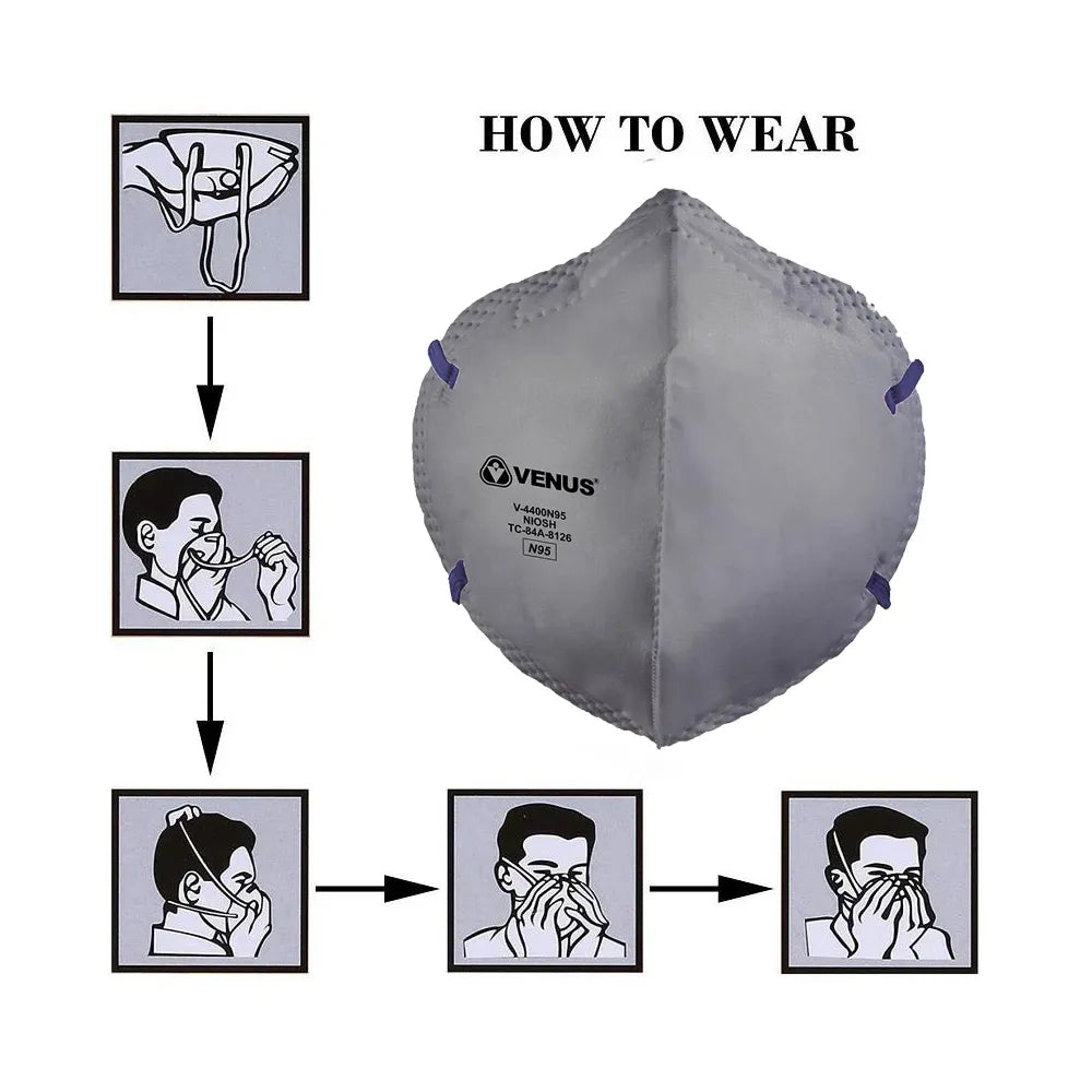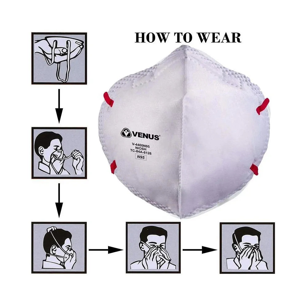 VENUS V-4400 Flat Fold Respirator is NIOSH Approved Respirator, Unique Fit Adjuster for optimum protection and comfort, Superior Micro Fine Filter technology which protects against RSPM upto 0.3micron.