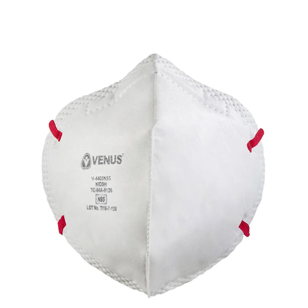 VENUS V-4400 Flat Fold Respirator is NIOSH Approved Respirator, Unique Fit Adjuster for optimum protection and comfort, Superior Micro Fine Filter technology which protects against RSPM upto 0.3micron.