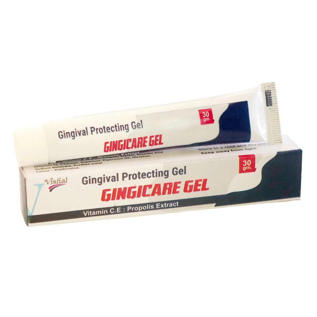 Gingicare Gel is a specialized oral care product designed for the prevention and protection of gingival, palate, and oral mucosa health. This gel contains key ingredients such as Vitamins C and E, renowned for their potent antioxidant properties, as well as propolis, which provides protection against bacteria and viruses while soothing inflammation. The gel offers several important indications: