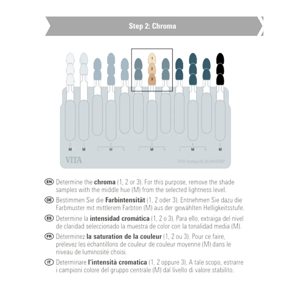 - Record the identified shade using the designated notation system provided with the VITA Toothguide 3D-MASTER kit.