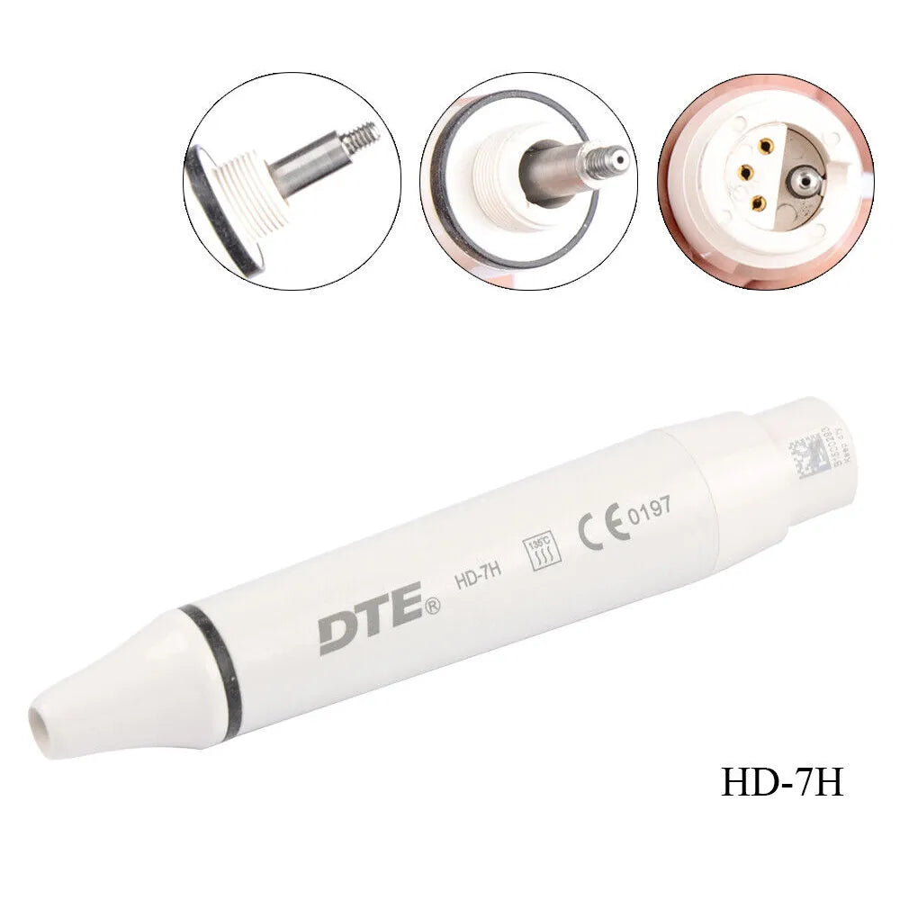 Woodpecker D3 Non-LED Scaler Handpiece is a dental instrument designed for scaling and cleaning teeth. It is a handheld device that provides efficient and effective removal of plaque, tartar, and stains from the tooth surface. The D3 model is a non-LED version. The Woodpecker D3 scaler handpiece is crafted from durable materials, ensuring its longevity and resistance to wear and tear. Its ergonomic design allows for comfortable handling and precise control during dental procedures. The handpiece is lightweight, reducing strain on the dentist's hand and providing optimal maneuverability. This scaler handpiece is equipped with a high-frequency vibration mechanism that generates ultrasonic waves. These waves are transmitted through the tip of the handpiece, creating gentle yet powerful vibrations. The oscillations effectively remove plaque, tartar, and other deposits from the tooth surface and along the gum line. The D3 scaler handpiece is compatible with a variety of scaler tips, allowing dentists to choose the appropriate tip for different treatment needs. The handpiece features a quick and easy tip replacement system, facilitating efficient workflow and reducing downtime between procedures