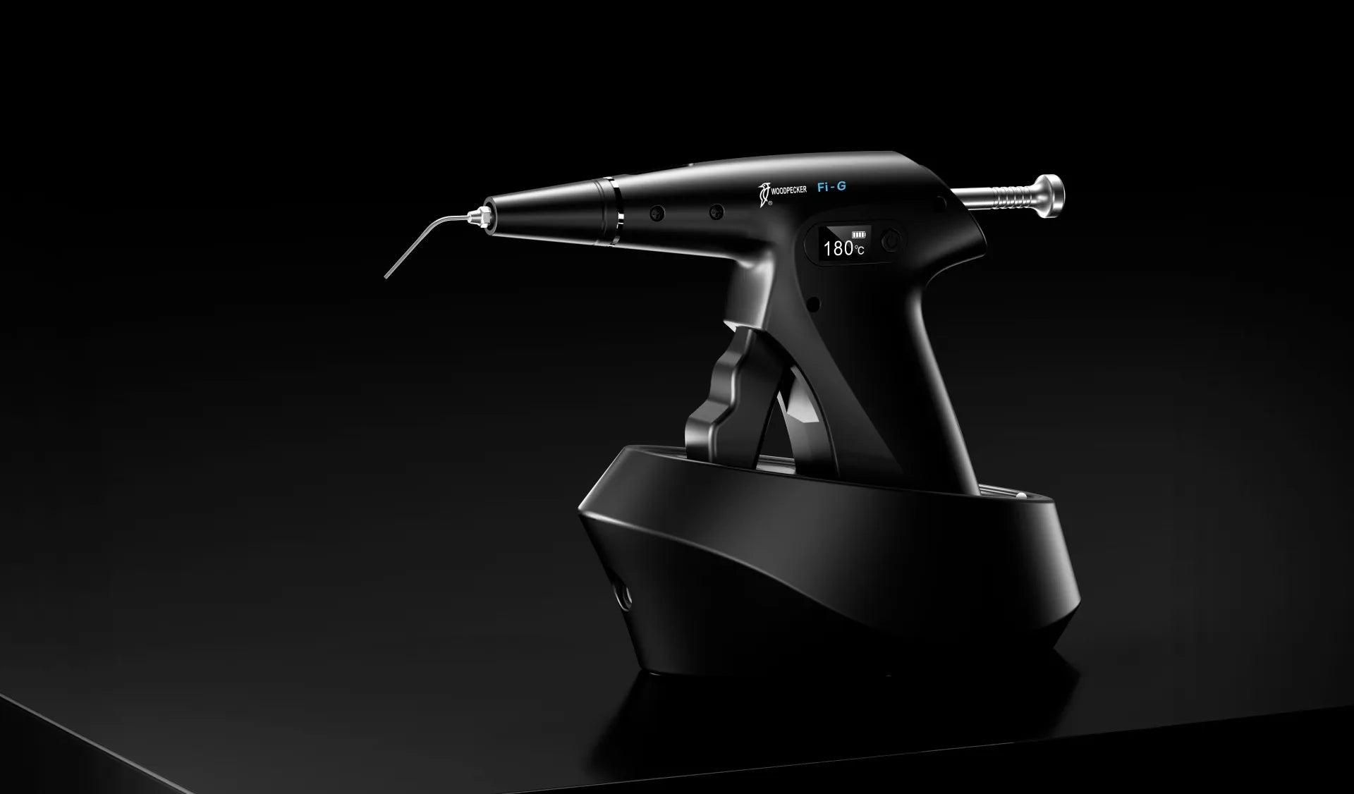 - Ensure that the Woodpecker Obturation Gun is fully charged by placing it on the charging base and connecting the power adapter.