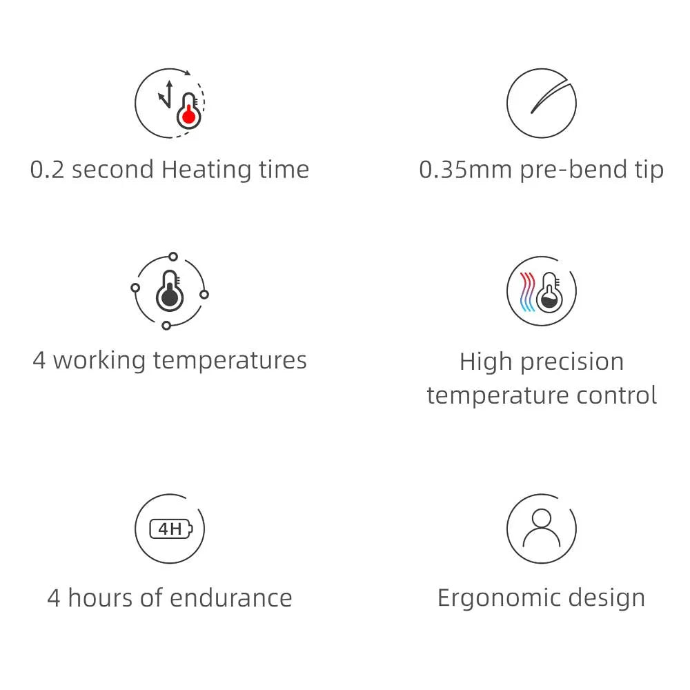 - Optional preset temperatures: 150℃ → 180℃ → 200℃ → 230℃