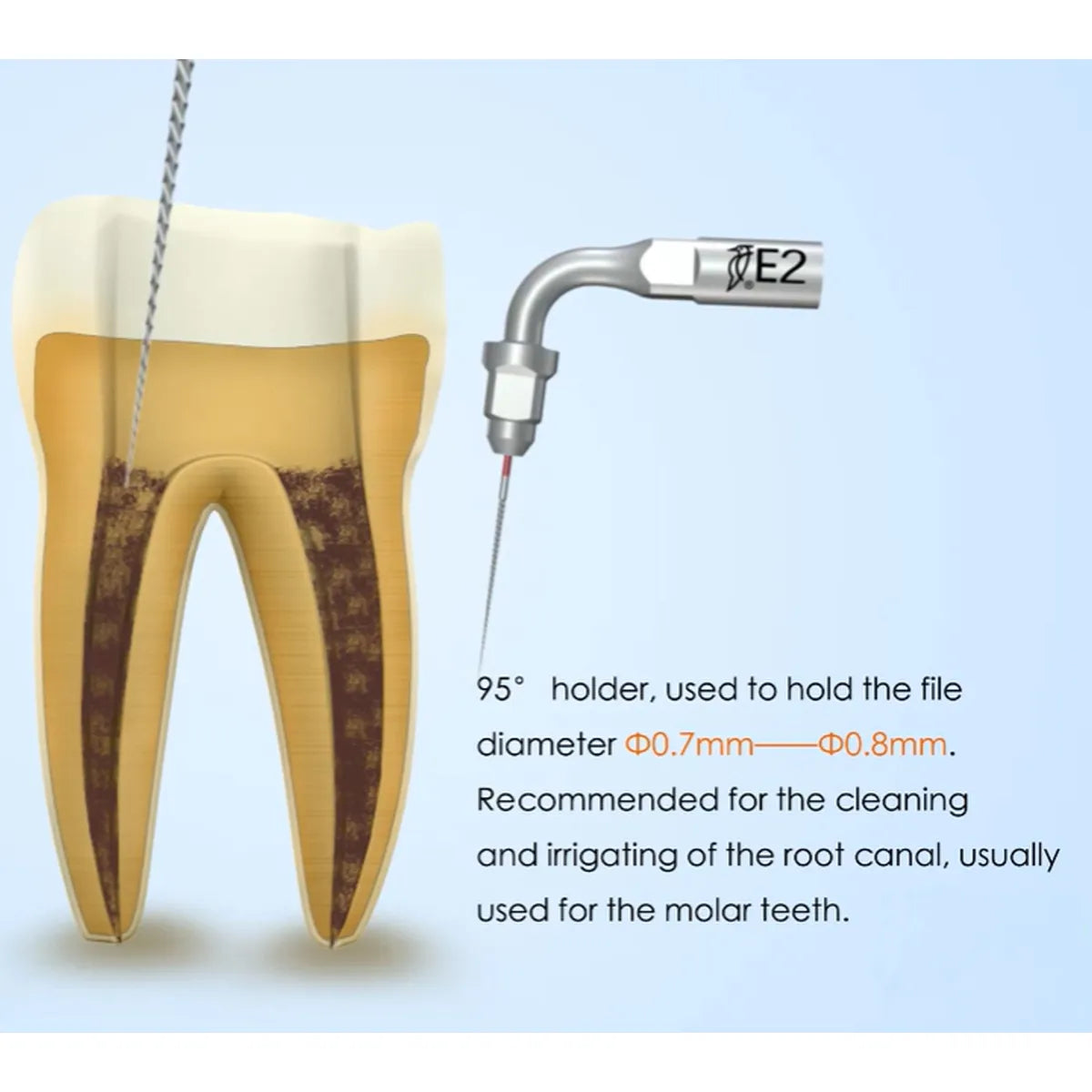 - Holder Angle: 95° holder for enhanced maneuverability during molar root canal procedures