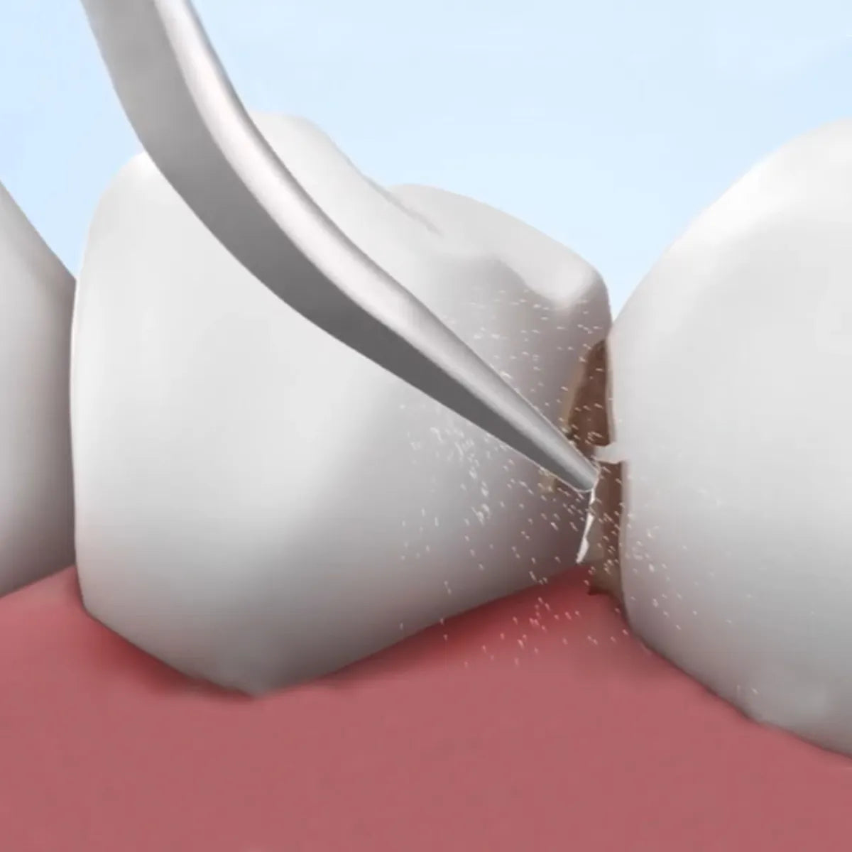 - Glide the tip along the surfaces, including interproximal and sulcus areas, using a sweeping motion to effectively remove calculus and plaque