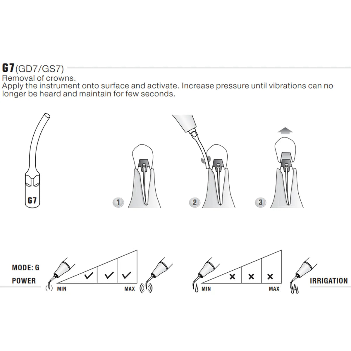 Woodpecker Scaler Tip G7 for UDS & EMS Scalers is a specialized attachment designed for use with UDS and EMS ultrasonic scalers, primarily for the removal of crowns, pins, and inlays. Crafted from high-quality stainless steel, this durable tip is coated to resist corrosion and is designed to minimize irritation during use, ensuring patient comfort. The G7 tip is engineered for safety, as it is firmly pressed against the scaler, providing stability for both the dentist and the patient during procedures. Its precise design enhances performance and efficiency, making it an essential tool for dental professionals in managing complex restorative tasks. Autoclavable for easy sterilization, the G7 scaler tip promotes optimal hygiene and reliability in dental practices.