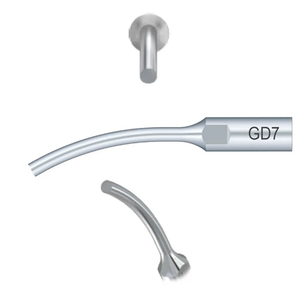 The Woodpecker Scaler Tip GD7 for DTE & Satelec Scalers is specifically designed for removing dental crowns. It provides an efficient method to detach crowns by applying the tip onto the crown's surface, activating the scaler, and increasing pressure until vibrations cease. The GD7 tip is known for its high precision and effectiveness, ensuring the crown is removed safely and without damage to the surrounding teeth. Compatible with DTE and Satelec scaler systems, the GD7 is crafted from durable stainless steel, making it a reliable tool for dental professionals during crown removal procedures.