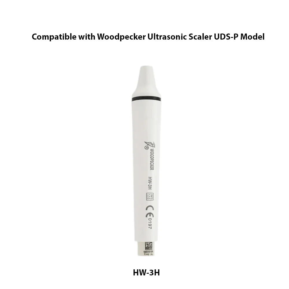 The Woodpecker Scaler Handpiece HW includes a range of ultrasonic scaler handpieces designed for dental professionals. This series features both detachable and non-detachable options, catering to various clinical needs. The HW-1 is a non-detachable handpiece, providing a sealed design that enhances durability and minimizes contamination risks. It is compatible with Woodpecker and EMS ultrasonic scaler systems, ensuring versatility. In contrast, the other models in the series are detachable, allowing for easy maintenance and cleaning. These handpieces utilize advanced piezoelectric technology to convert electrical energy into mechanical vibrations, effectively removing dental calculus and plaque.All handpieces in the HW series are autoclavable, ensuring hygiene and safety in dental practices. Their lightweight design facilitates comfortable handling, making them essential tools for efficient scaling and root planing procedures. Overall, the Woodpecker HW series combines functionality, reliability, and ease of use for dental professionals.