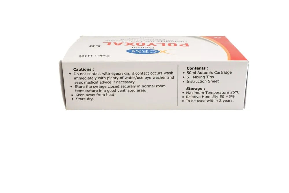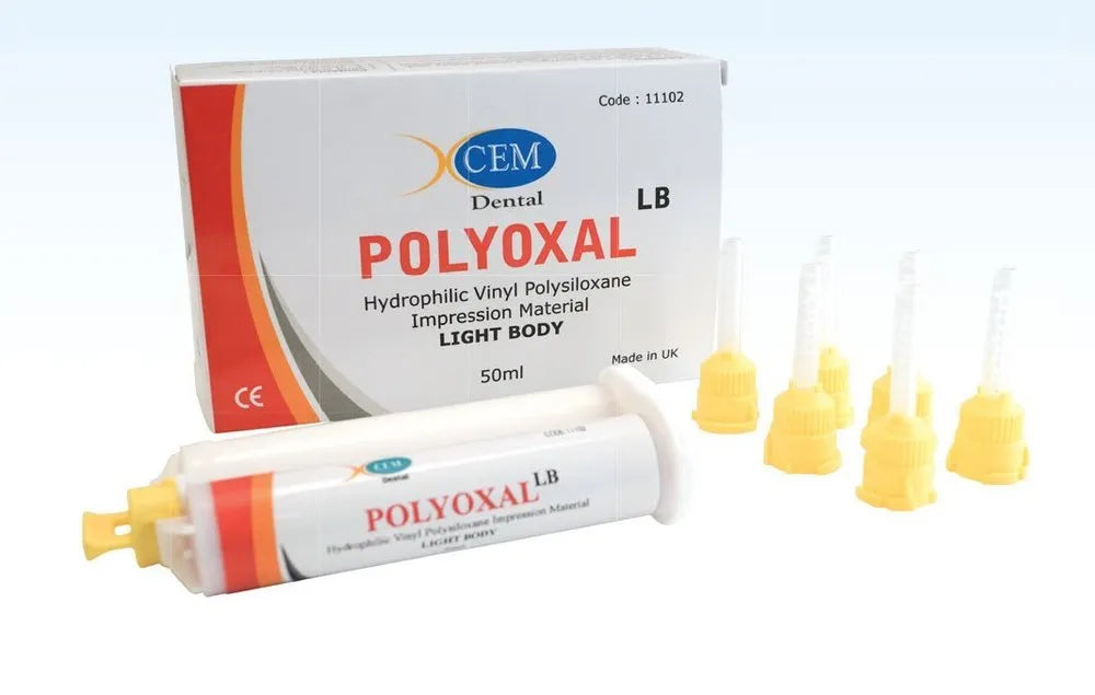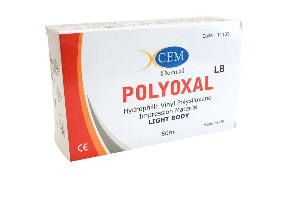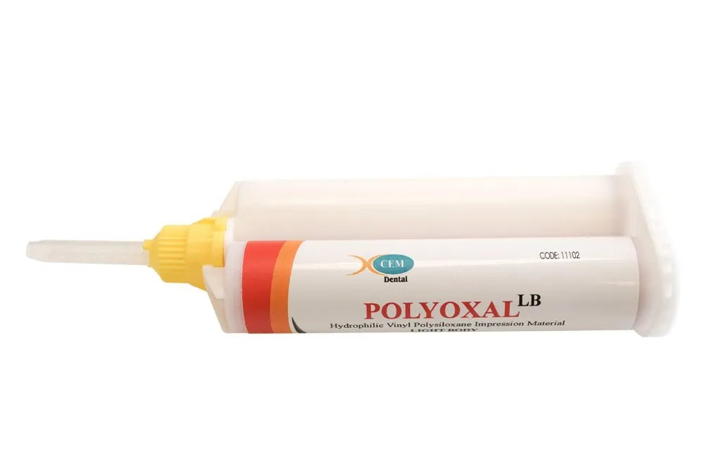 Xcem Polyoxal LB is a hydrophilic vinyl polysiloxane light body impression material designed for high-precision dental impressions. It is a low-viscosity, addition-cure silicone ideal for use in double impression techniques alongside Polyoxal Putty. This material offers exceptional flow, fine detail reproduction, and elasticity, making it suitable for complex dental cases requiring accuracy and stability.